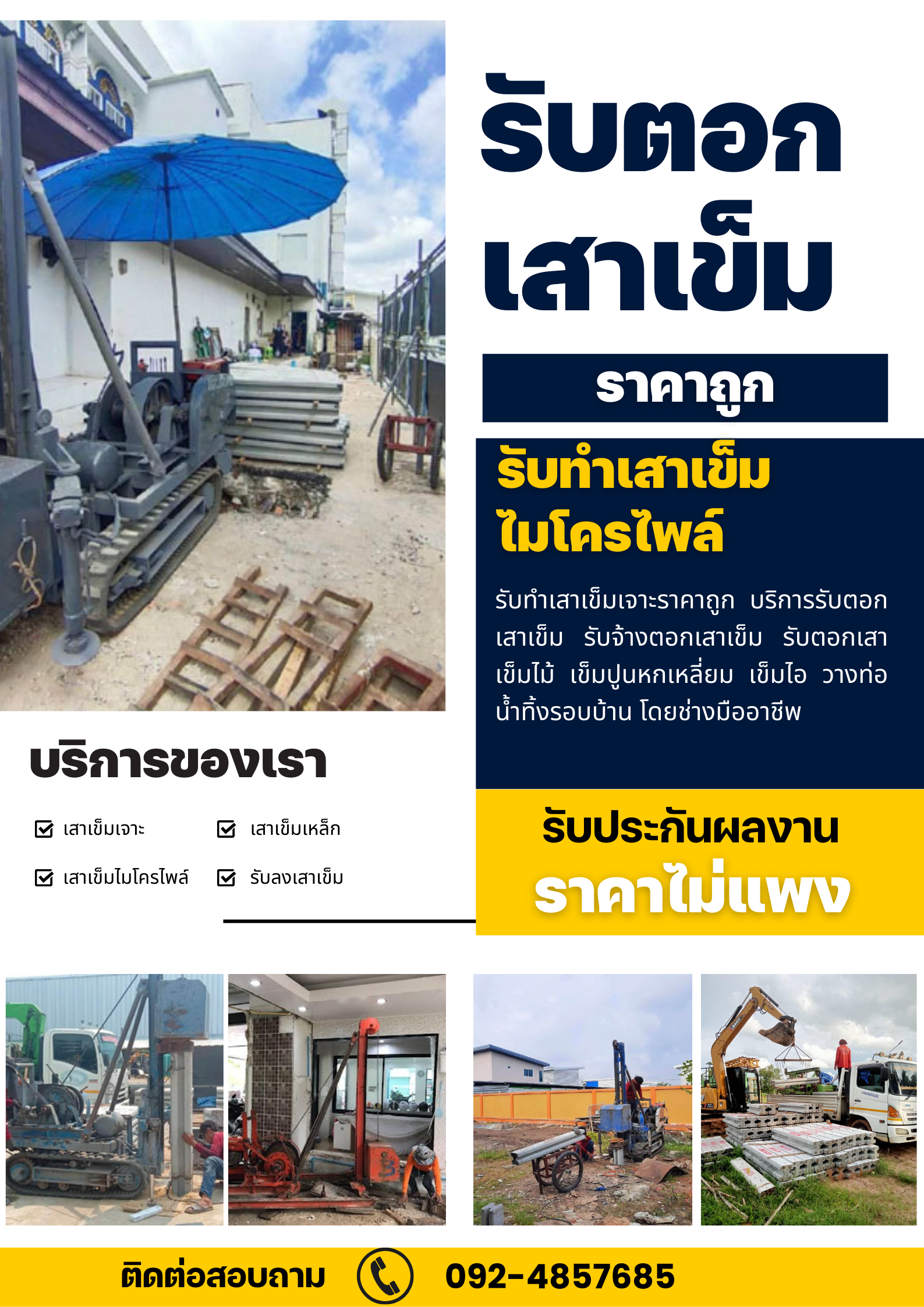 รับเหมาตอกเสาเข็มไมโครไพล์ (Micropile) เราเลือกใช้ เสาเข็มไมโครไพล์ คุณภาพสูง แข็งแรง ได้มาตรฐาน มอก.ยินดีให้คำปรึกษาดูหน้างาน โดยช่างรับเหมาผู้มีประสบการณ์งานก่อสร้างทุกชนิด ทุกประเภท งานคุณภาพ หมดปัญหาเรื่อง ทรุดแน่นอน พร้อมให้บริการ ยินดีให้คำปรึกษา ช่างตอกเสาเข็มตรัง Trang